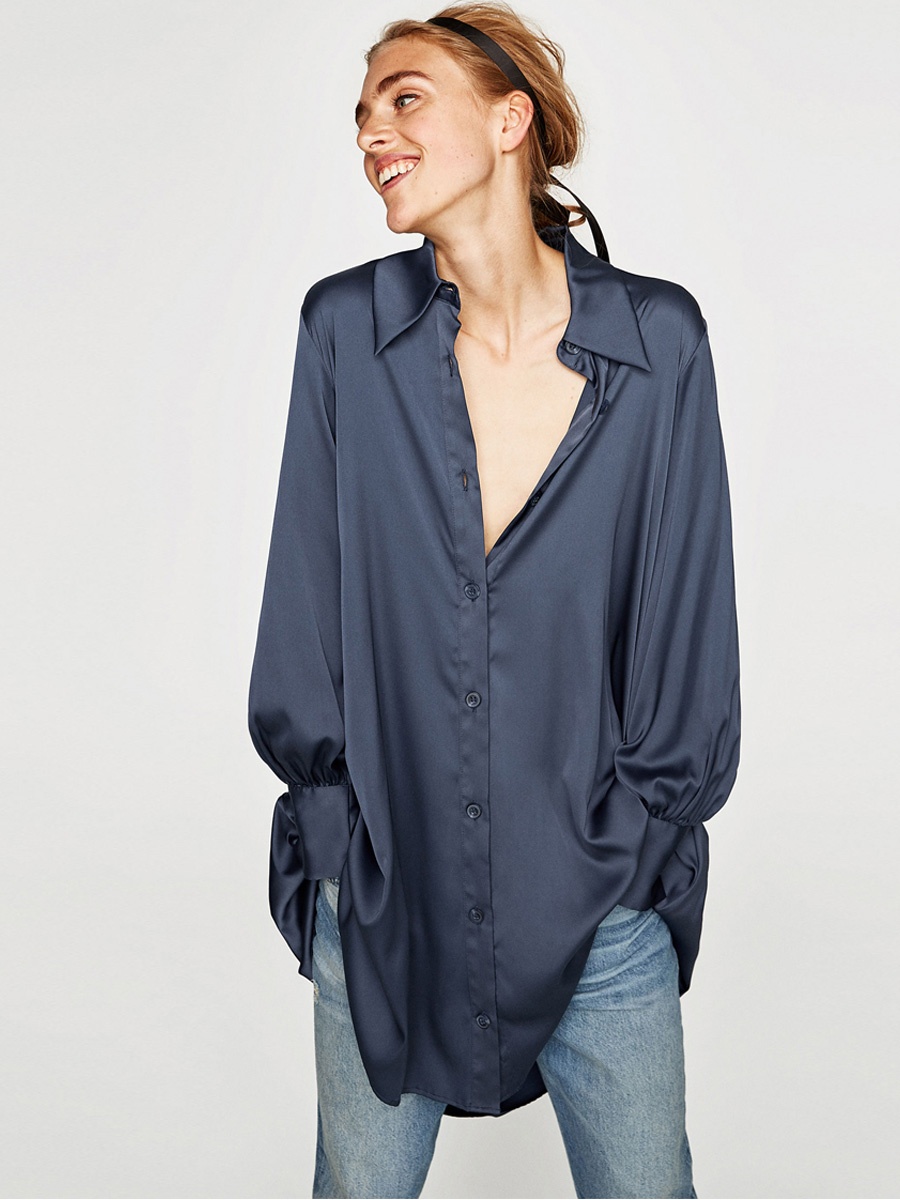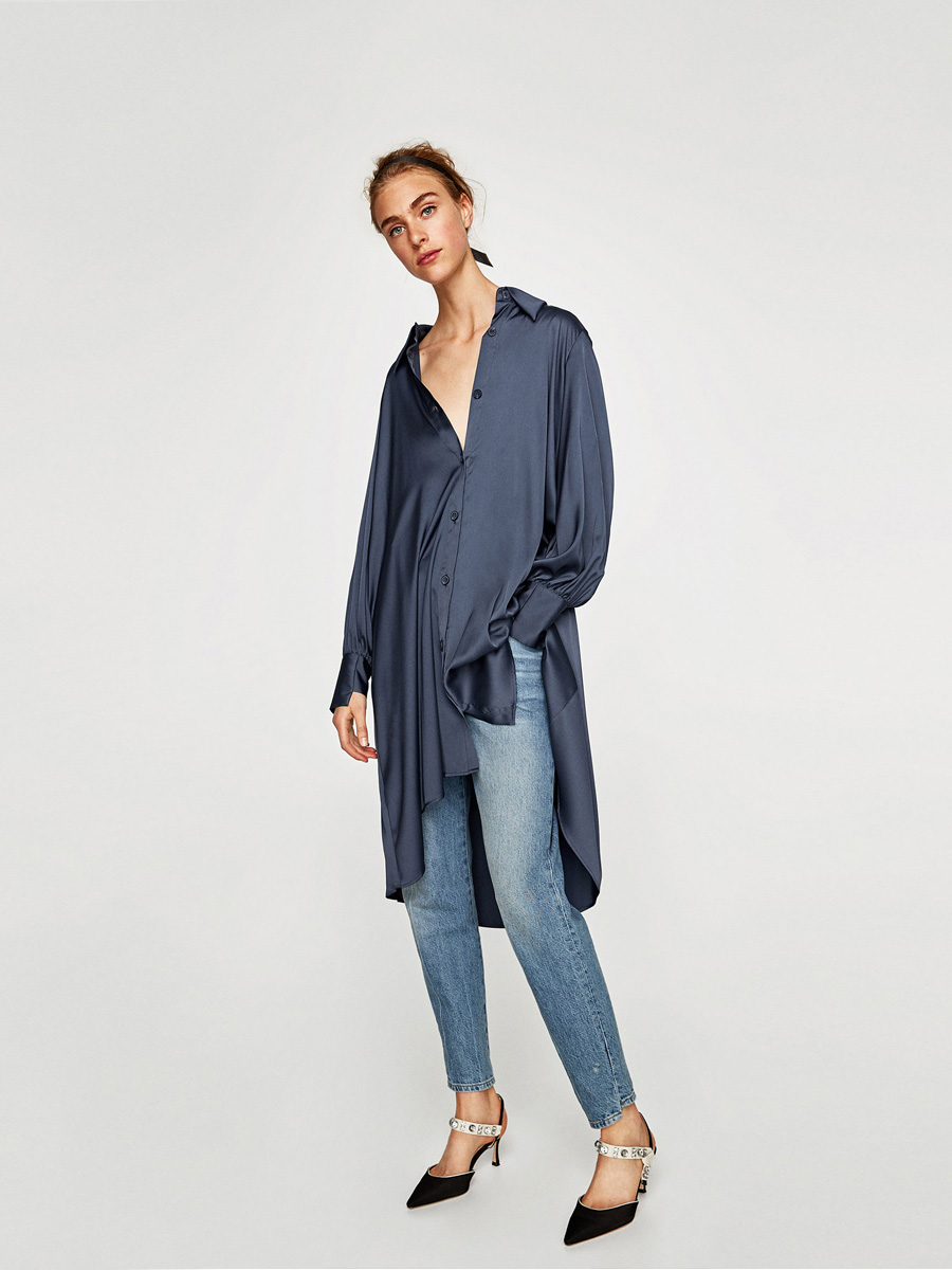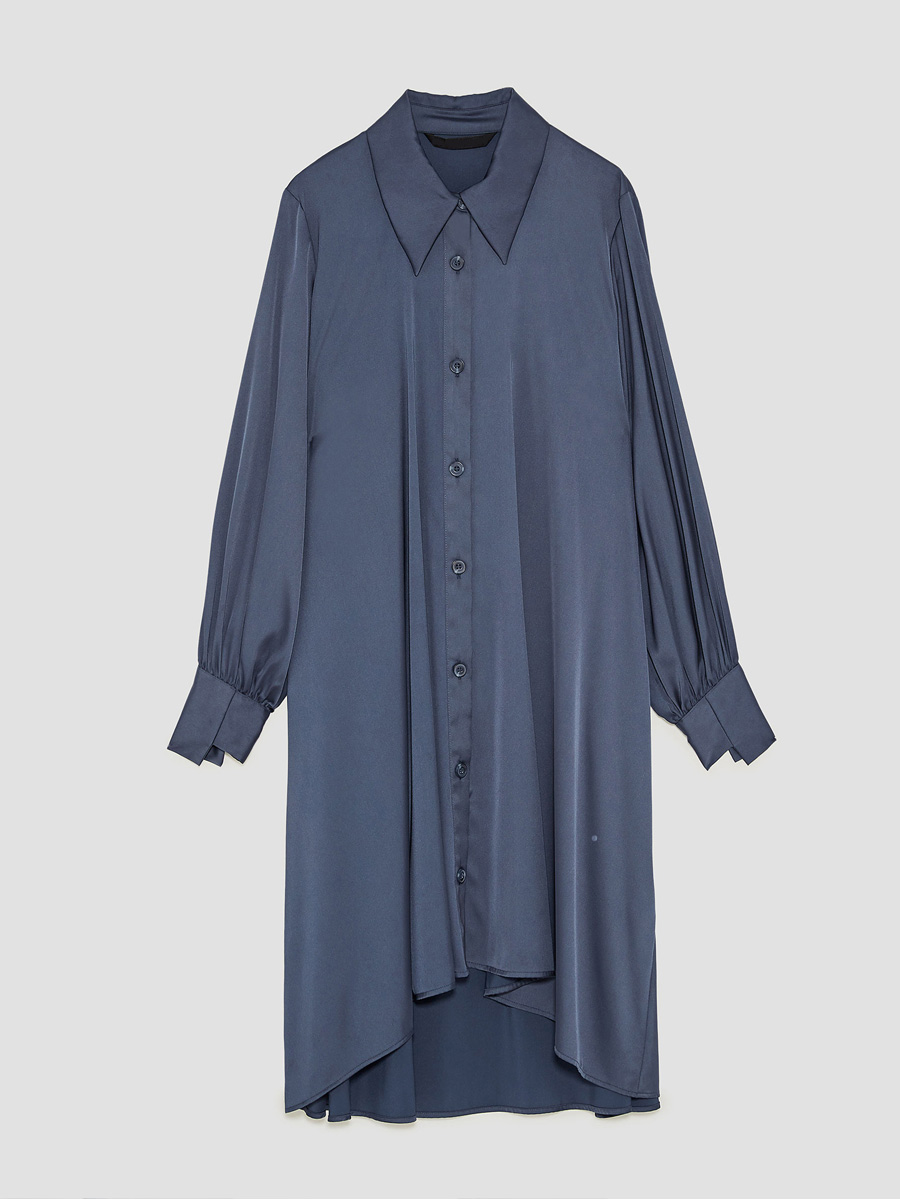 Fashion women’s satin shirt type irregular mid-length dress