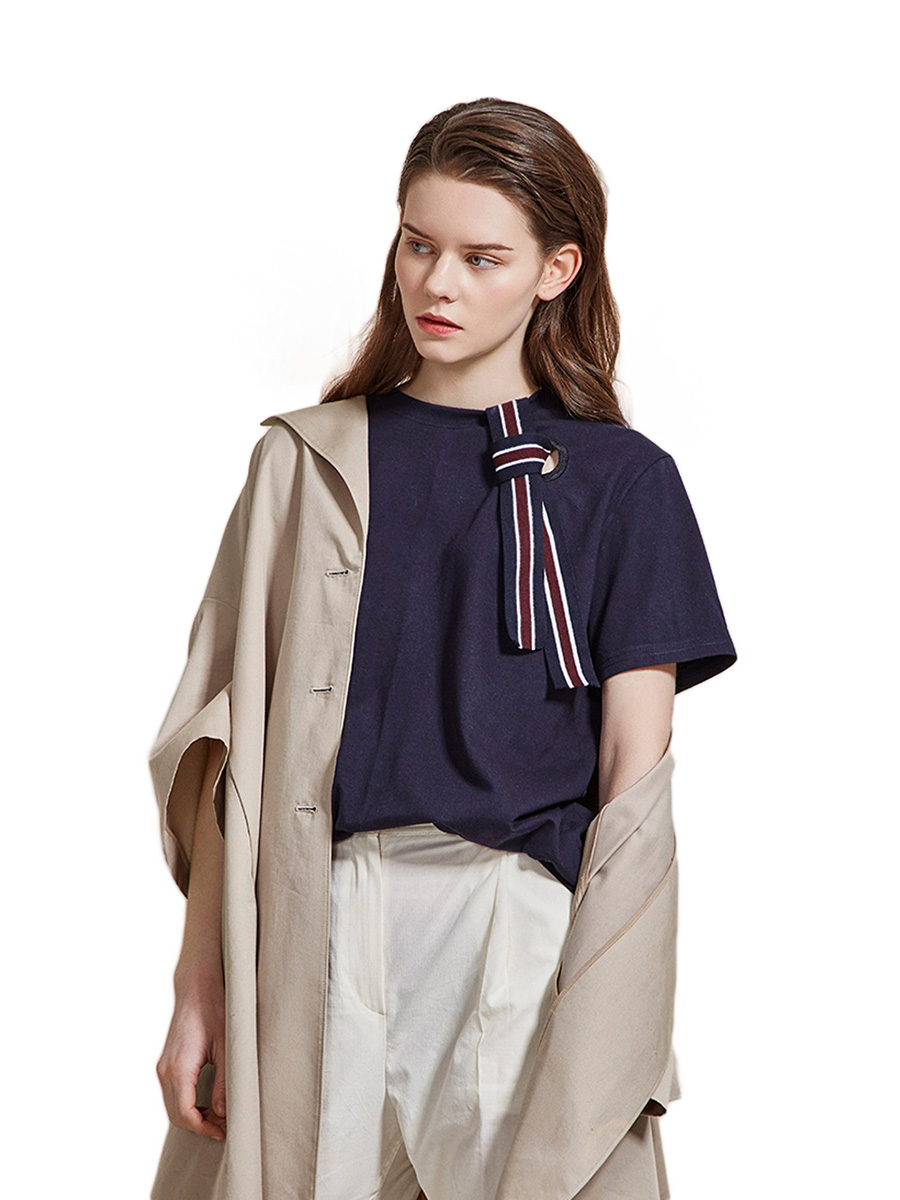 Hollow out ribbon loose t-shirt