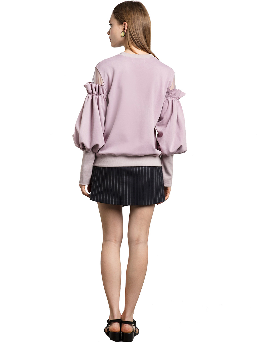 Popular elements:Off-shoulder stitching ribbed ruffle