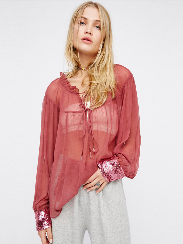 Sequins decorated ruffled chiffon shirt