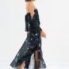 Sexy sling pleated off-shoulder printed split dress