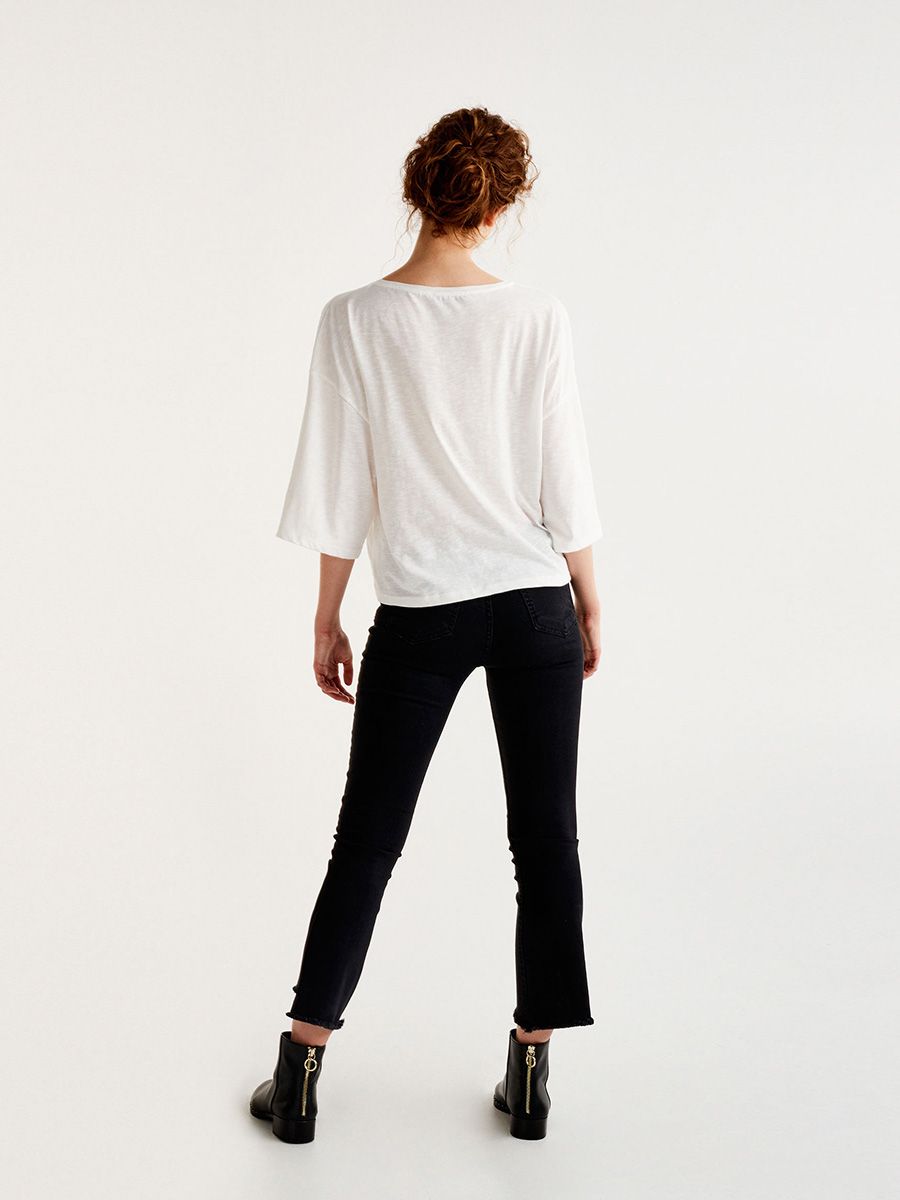 simple rose flower embroidery T-shirt