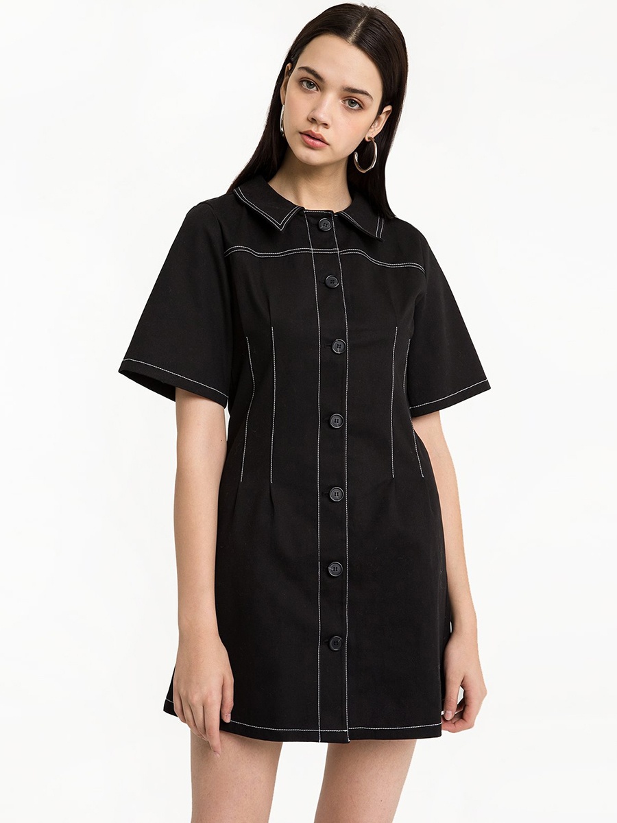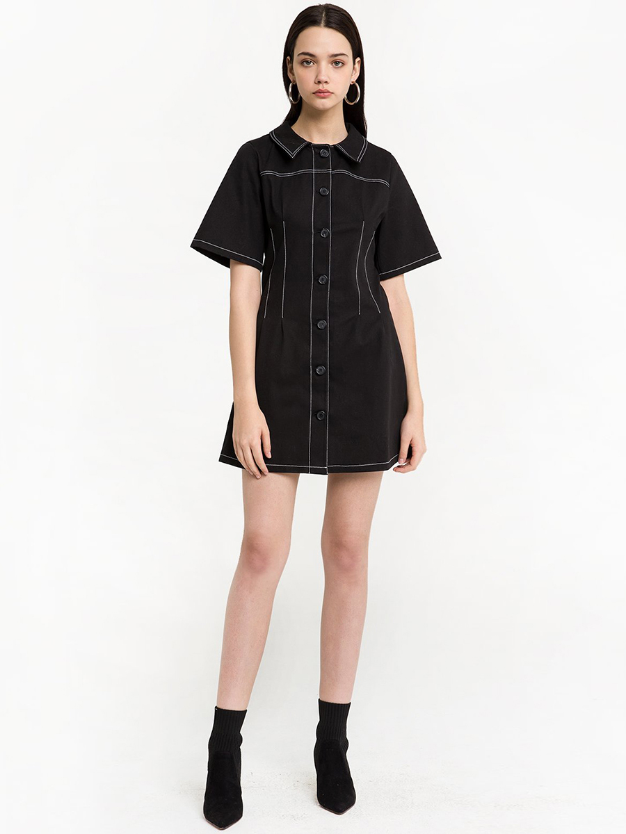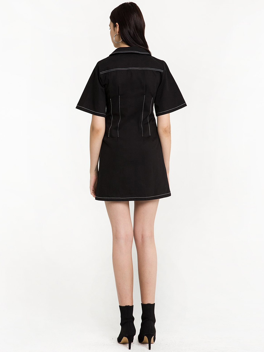 Sleek minimalist college wind color line waist dress