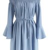 Popular elements:Solid color off-the- shoulder
