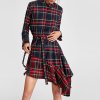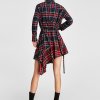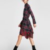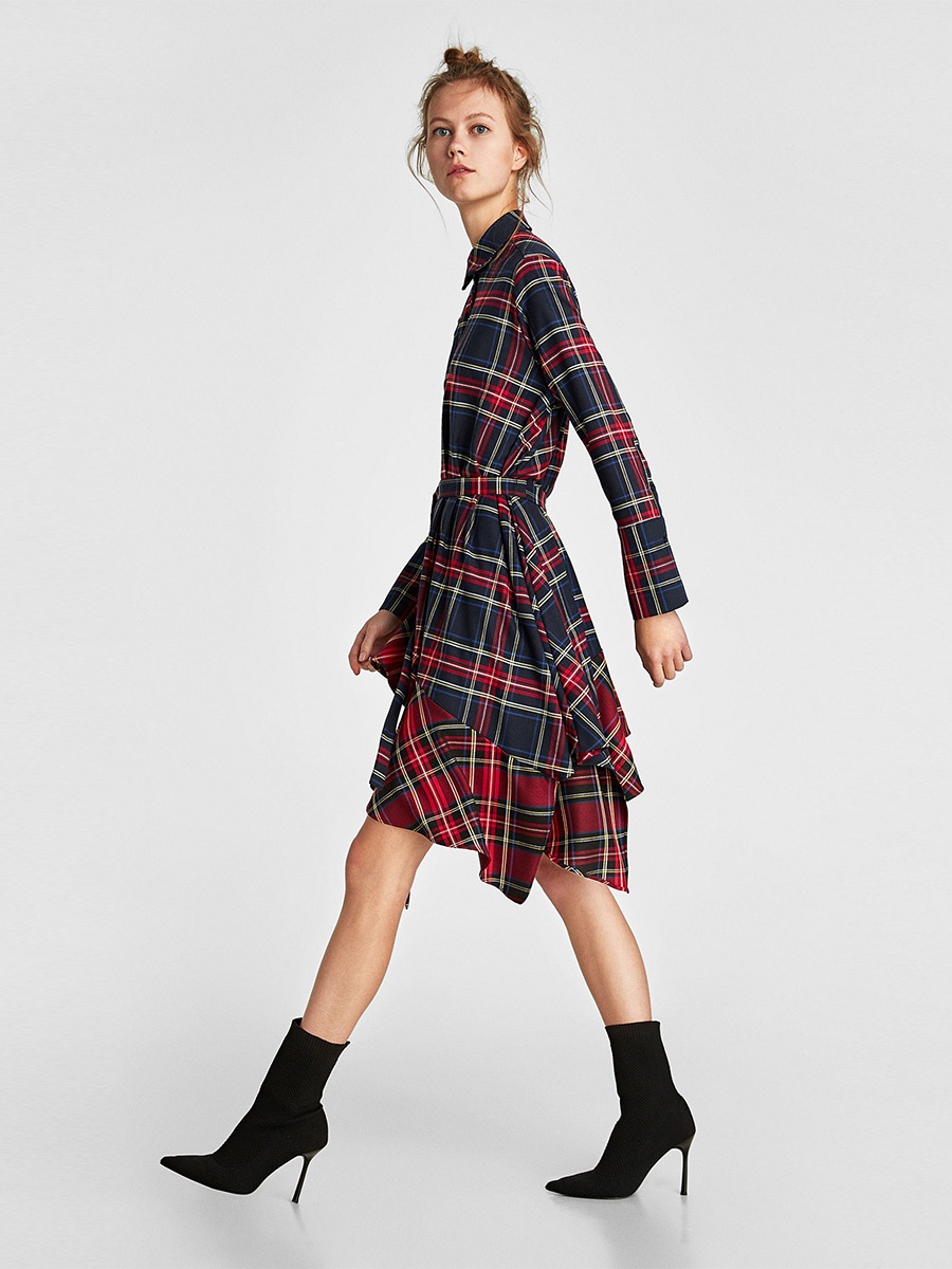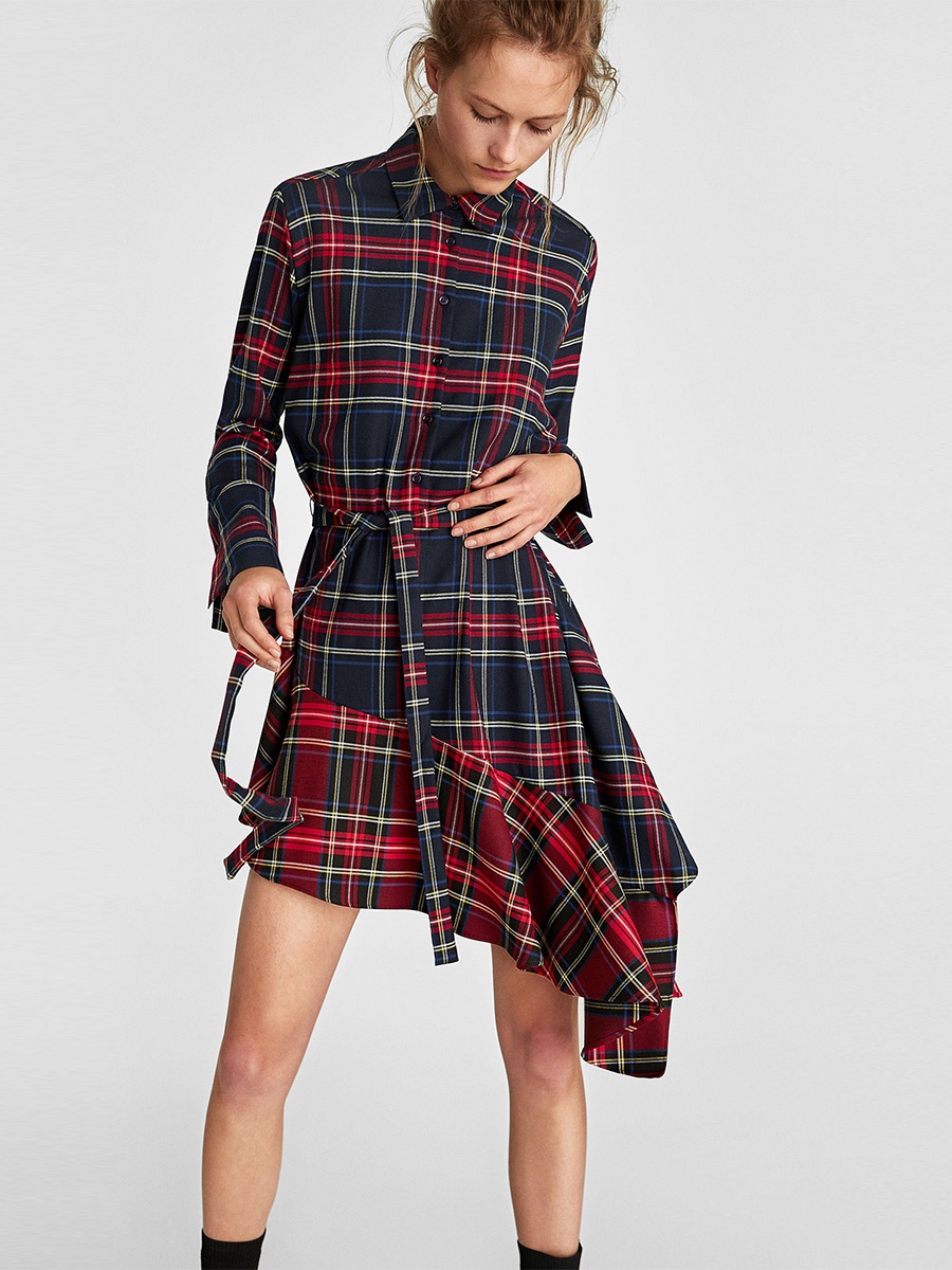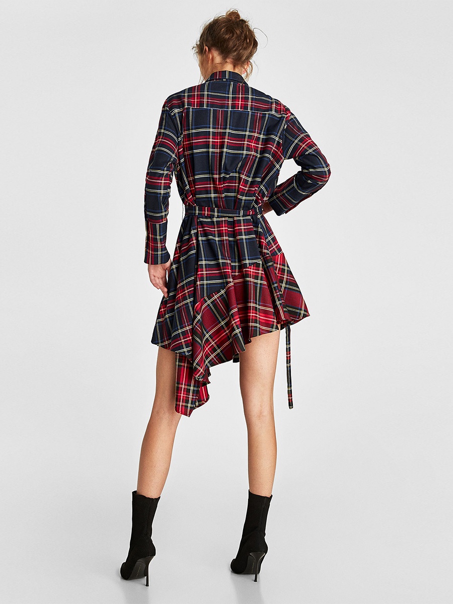 Sleek minimalist retro stitching plaid irregular lace waist dress