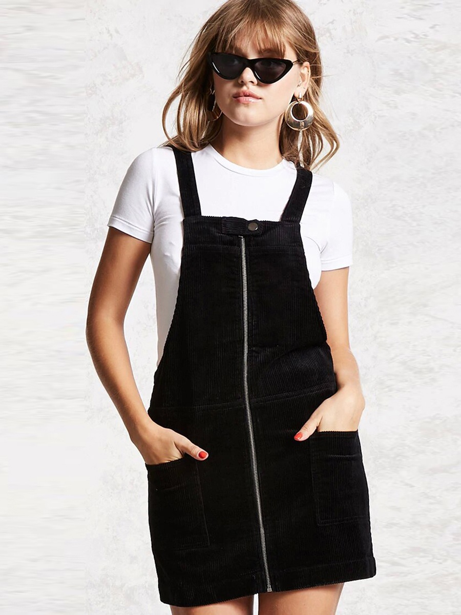 Popular elements:Solid color pocket zip button