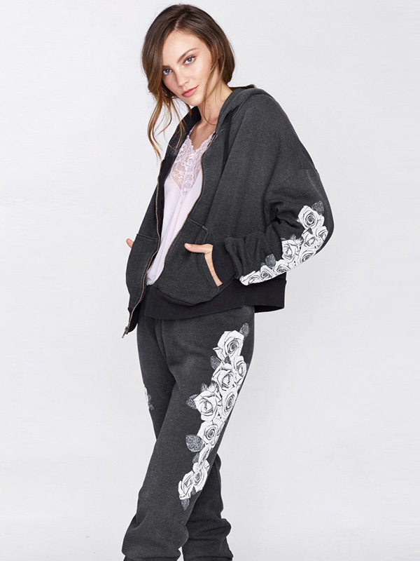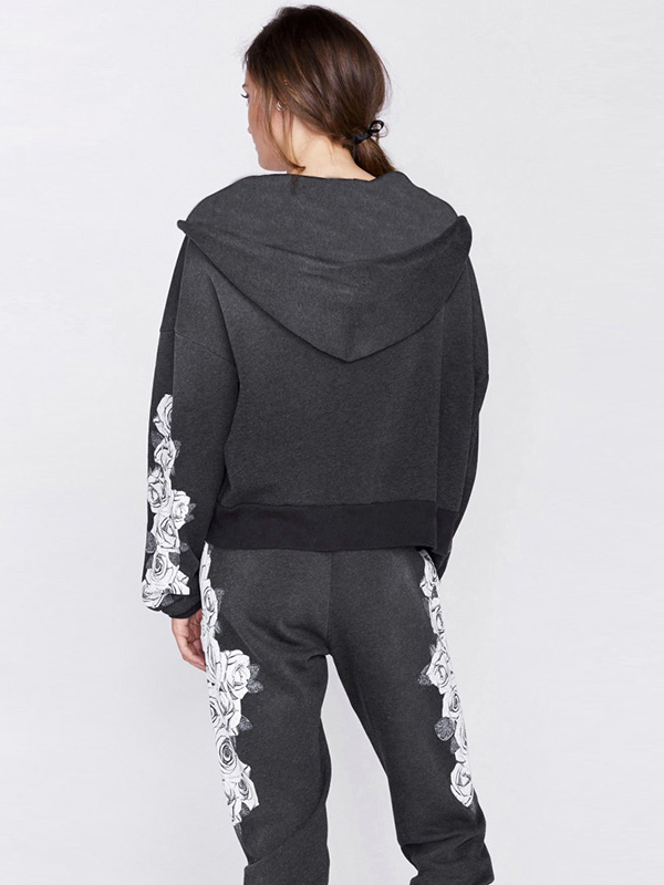 Be the first to review “Solid color printed loose shoulder hooded zipper knit jacket”