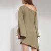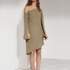 Popular elements:Solid color strapless split asymmetric