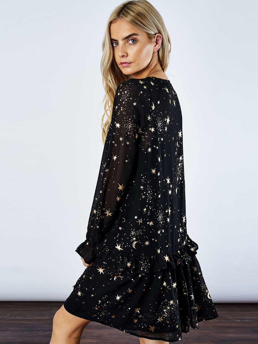Stamping stars printed ruffled loose dress