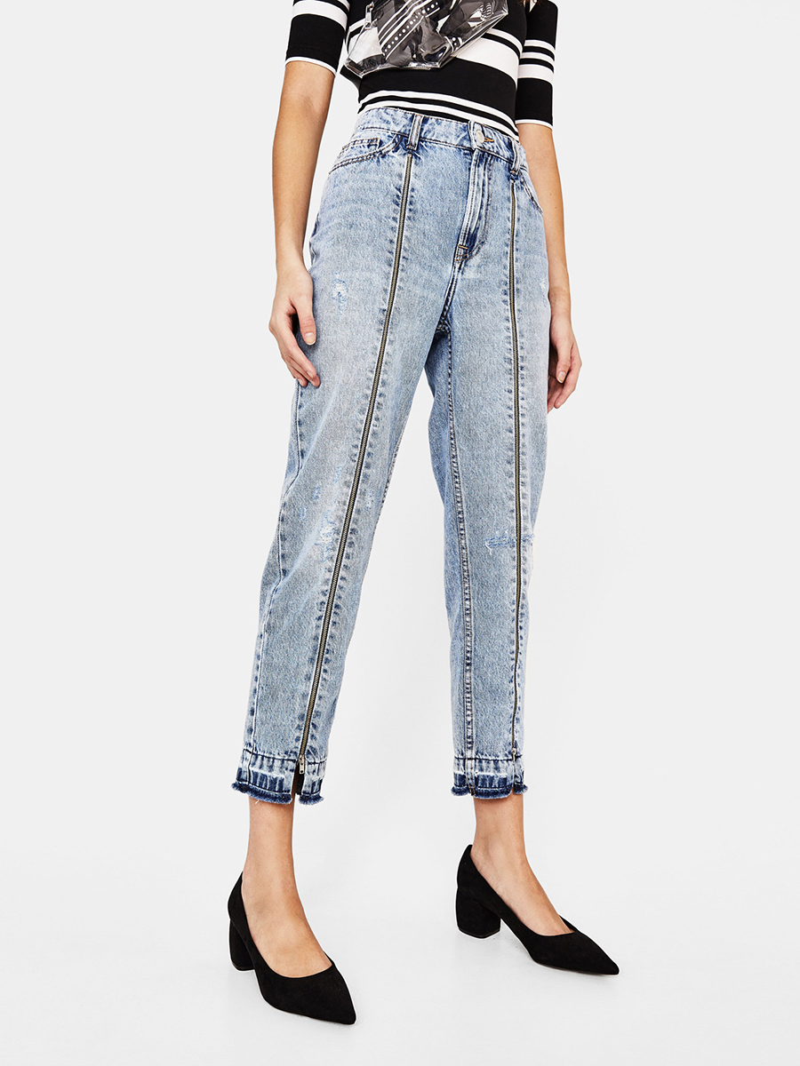 Straight zipper decorative trim slimming jeans