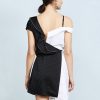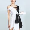 Stylish personality stitching strap tie asymmetrical dress