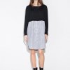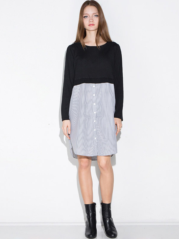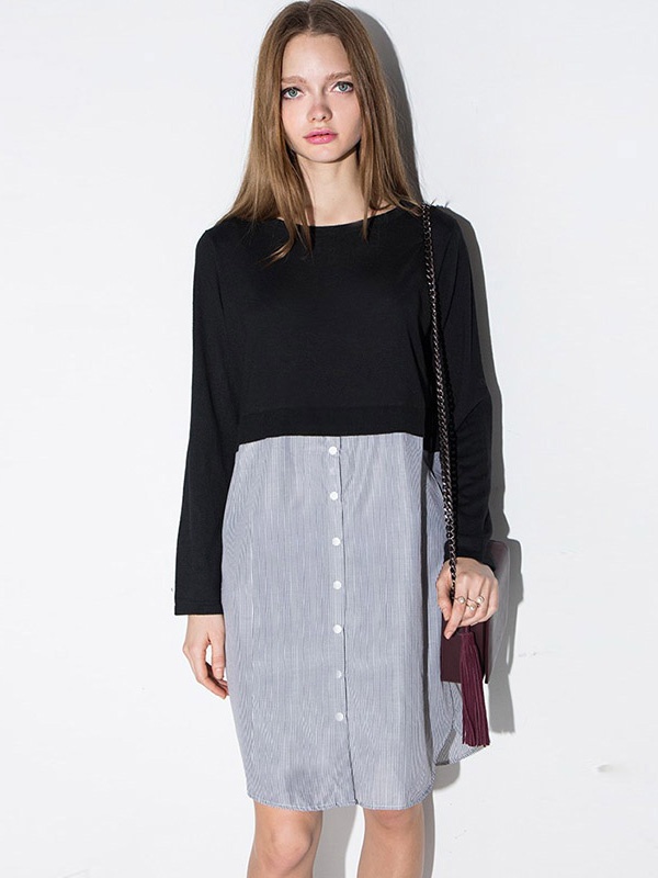Be the first to review “Sweet knit striped shirt stitching hem open dress”