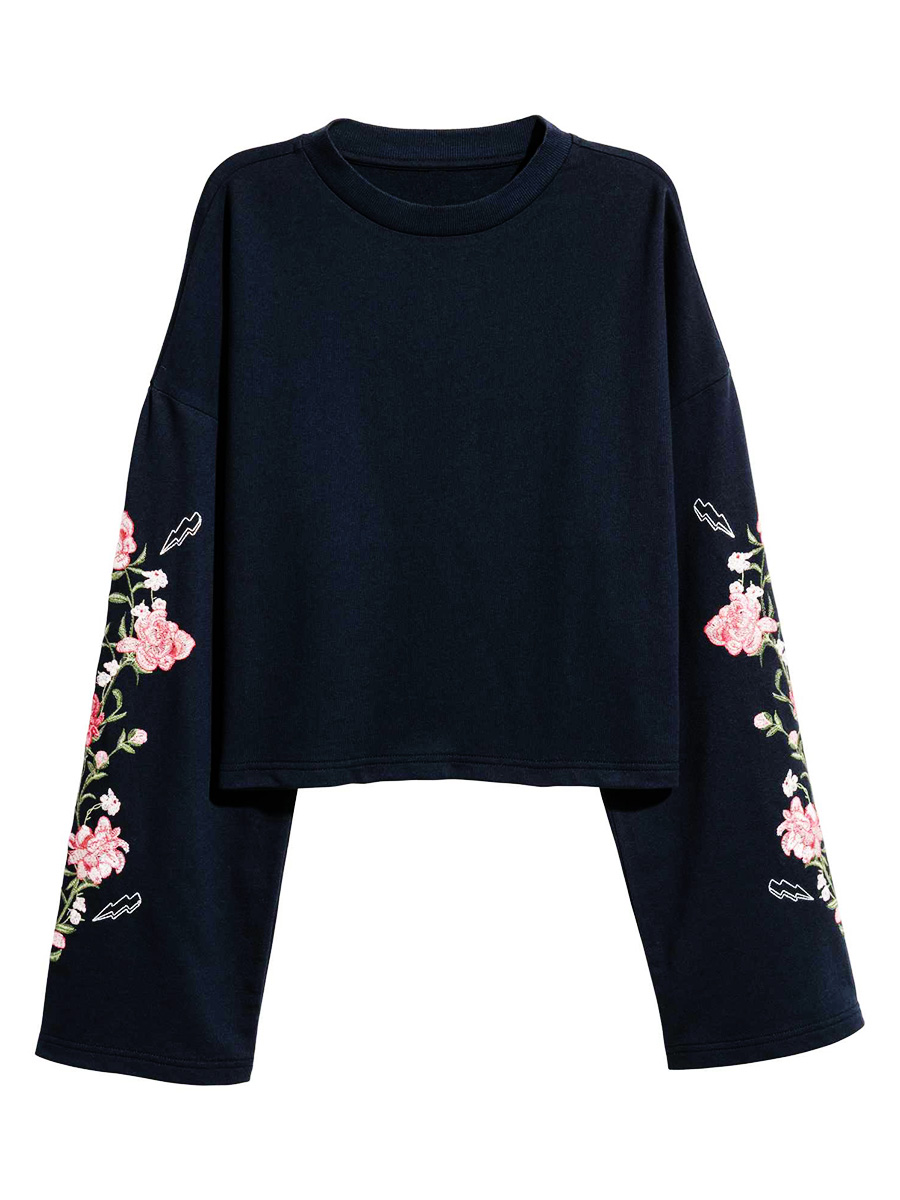 symmetrical flower pattern embroidery sweater