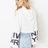 Trumpet sleeve cuff letters printed hooded sweater
