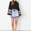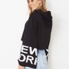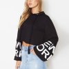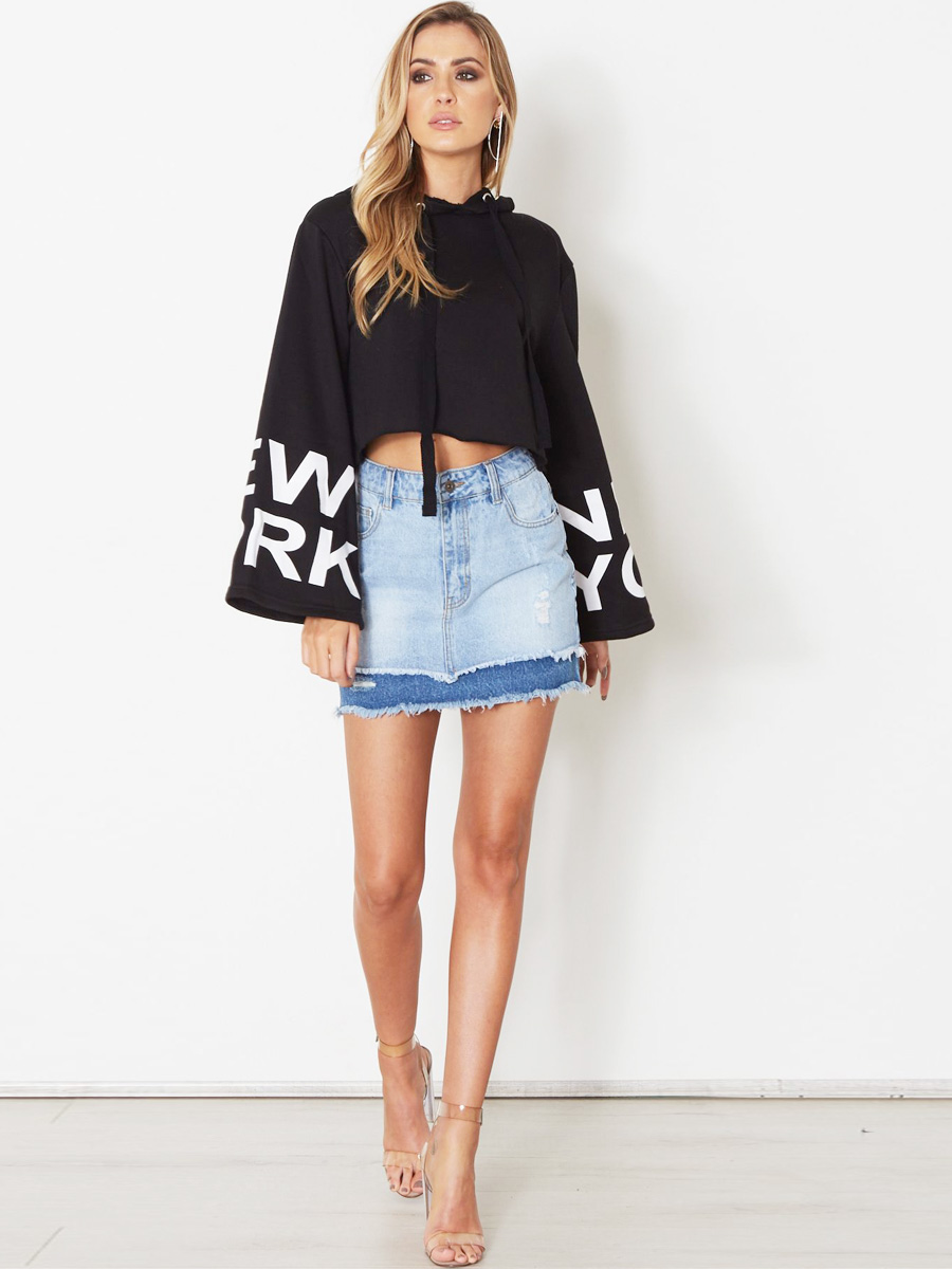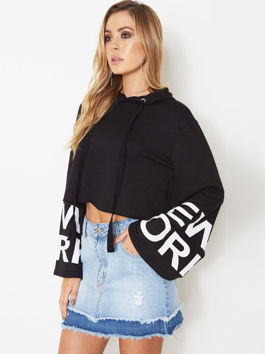Trumpet sleeve cuff letters printed hooded sweater
