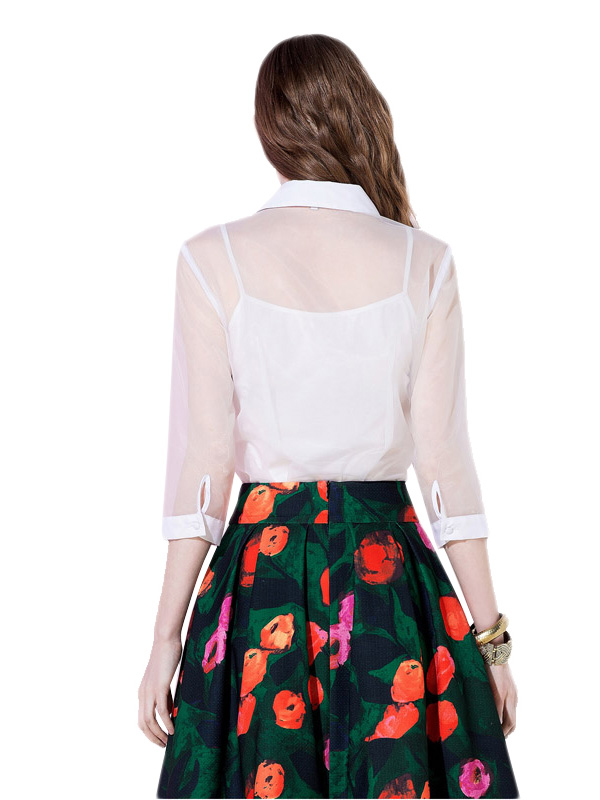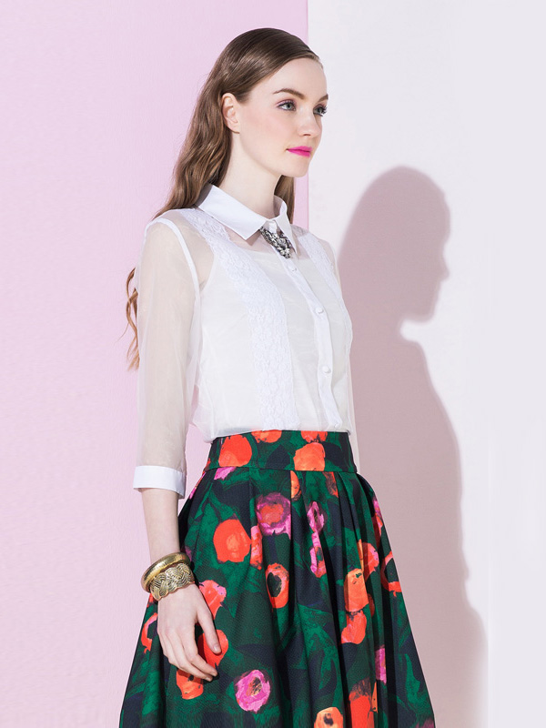 White See-through Lace Sleeve Bodycon Shirt